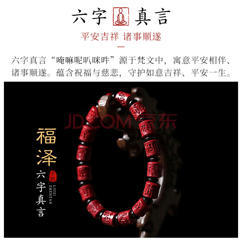 商品相册:石传百世朱砂手串护身符六字真言手链转运珠本命年生日礼物第