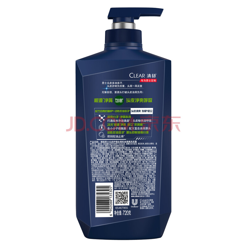 商品相册:清扬男士去屑洗发水 清爽控油720g 蓬松修护洗头膏京东自营金榜第1第