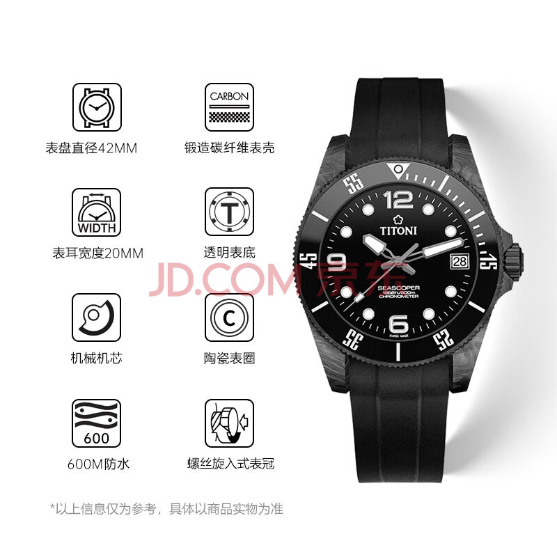 商品相册:梅花(Titoni)瑞士手表男士机械表海洋探索系列600M自动潜水腕表天文台认证礼物第