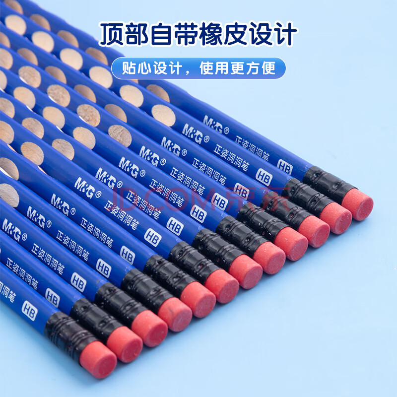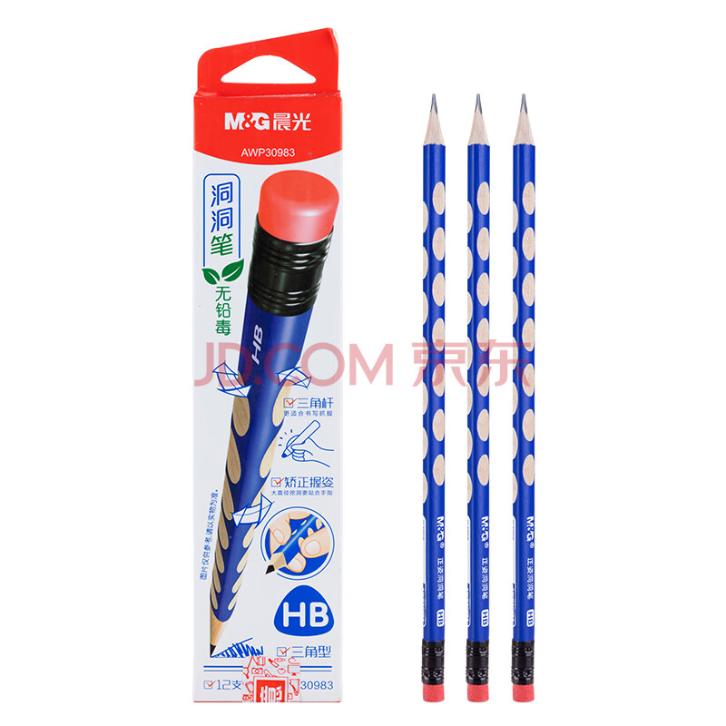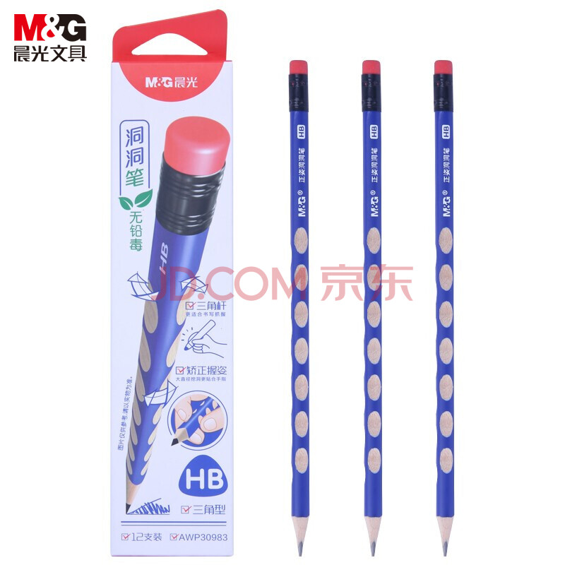 商品相册:晨光(M&G)(M&G)文具铅笔HB洞洞铅笔12支 小学生开学练字铅笔 儿童正姿矫姿 三角木杆铅笔 带橡皮头AWP30983第