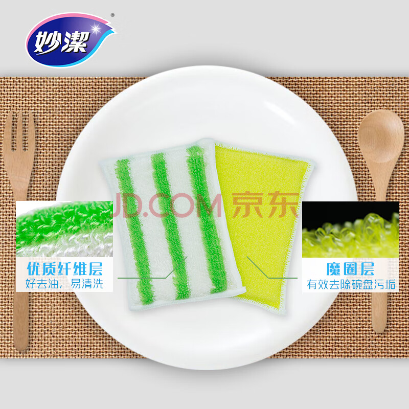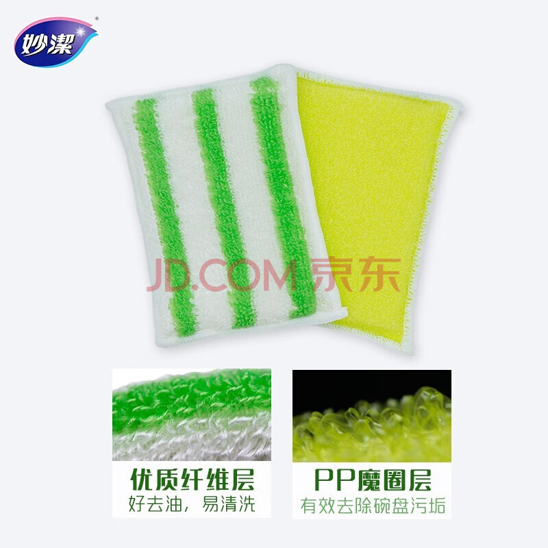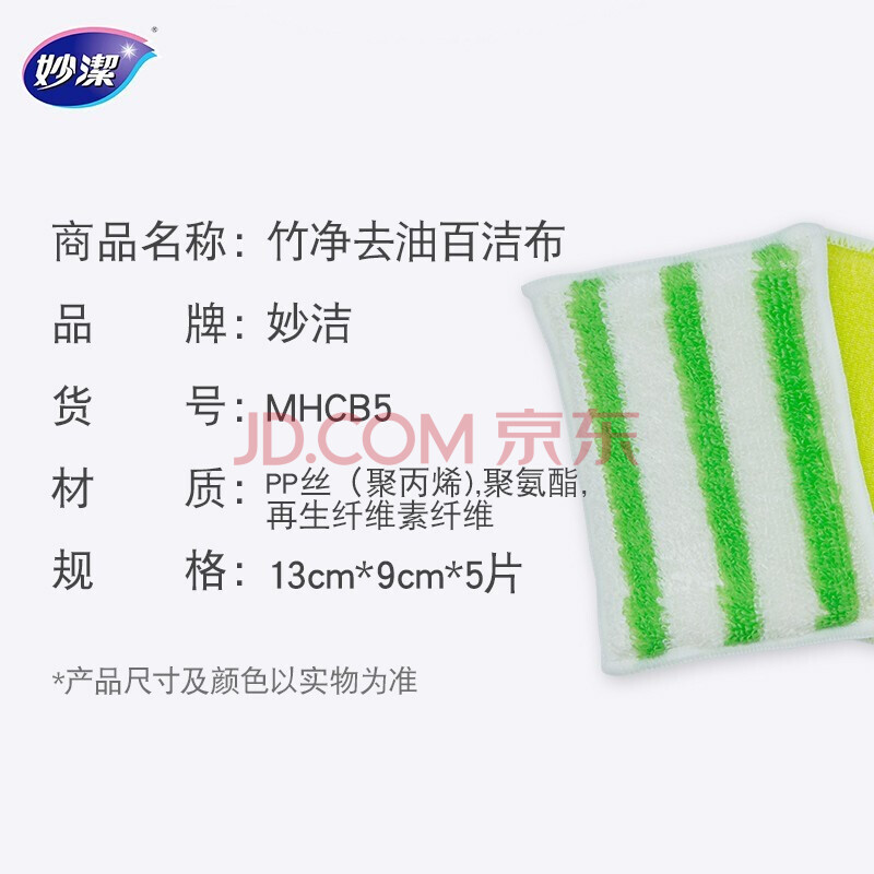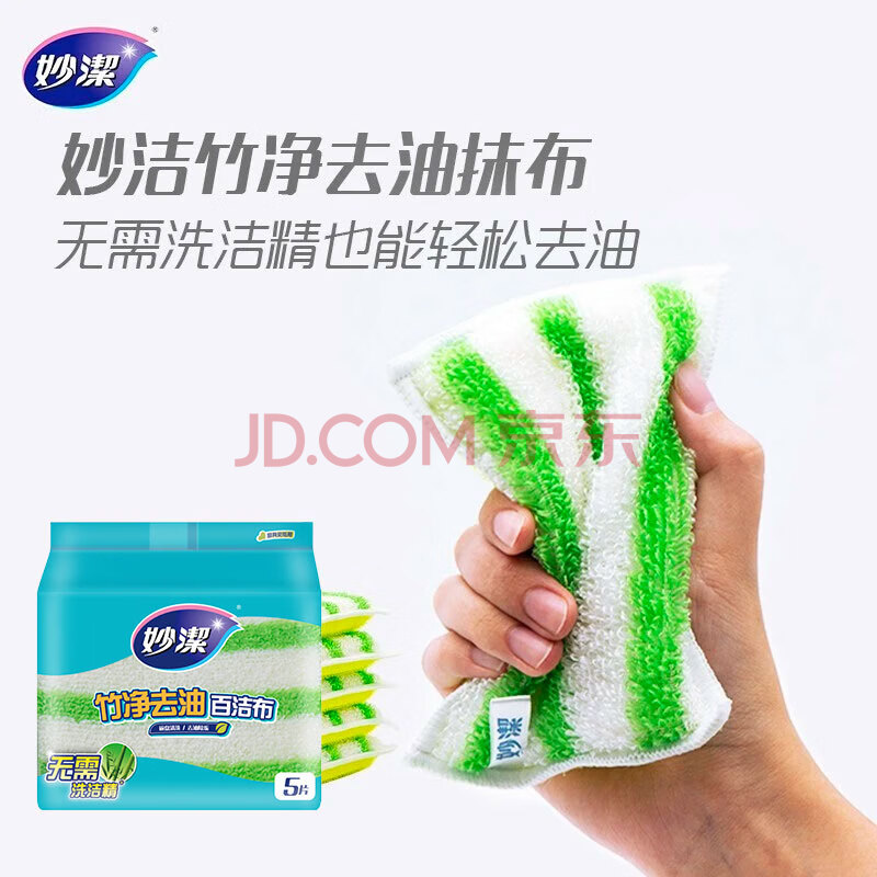 商品相册:妙洁 竹净去油百洁布 5片装 厨房抹布洗碗巾家用神器海绵第