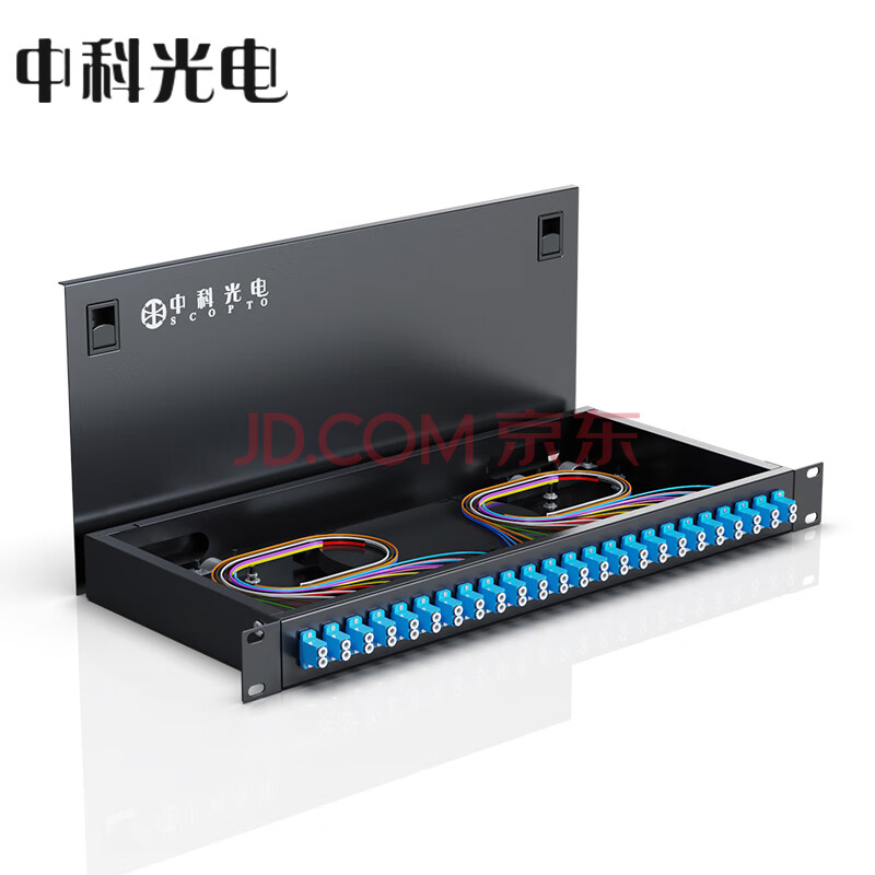 商品相册:中科光电 光纤终端盒24口48芯光纤配线架 光缆接续盒接线熔纤盒LC单模满配尾纤法兰 机架式 ZK-GXH-48LC-SM第