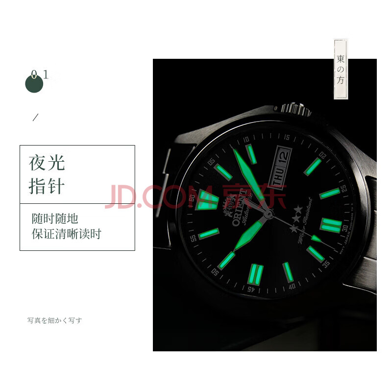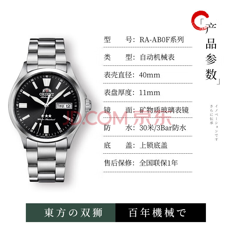 商品相册:东方(ORIENT)手表全自动机械表男士夜光双历商务休闲腕表原装进口RA-AB0F07B第