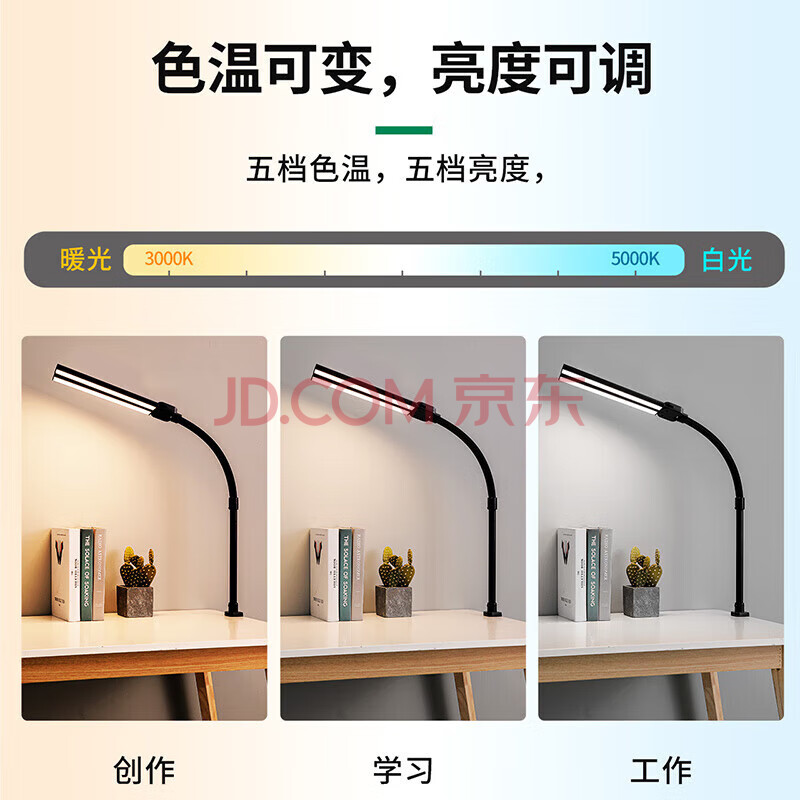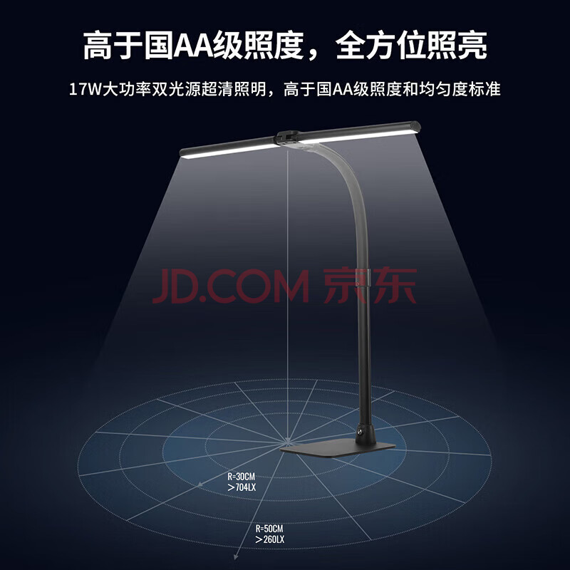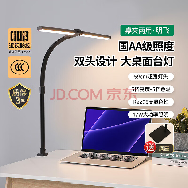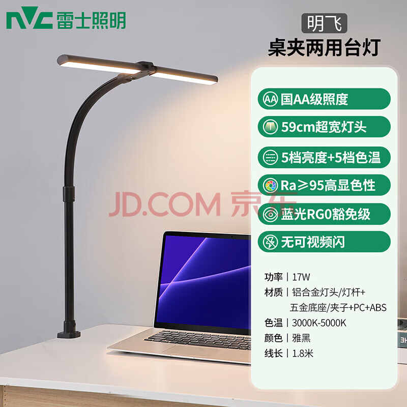 商品相册:雷士(NVC)国AA级学习护眼台灯学生宿舍儿童卧室家用T型书桌灯-明飞台夹两用第