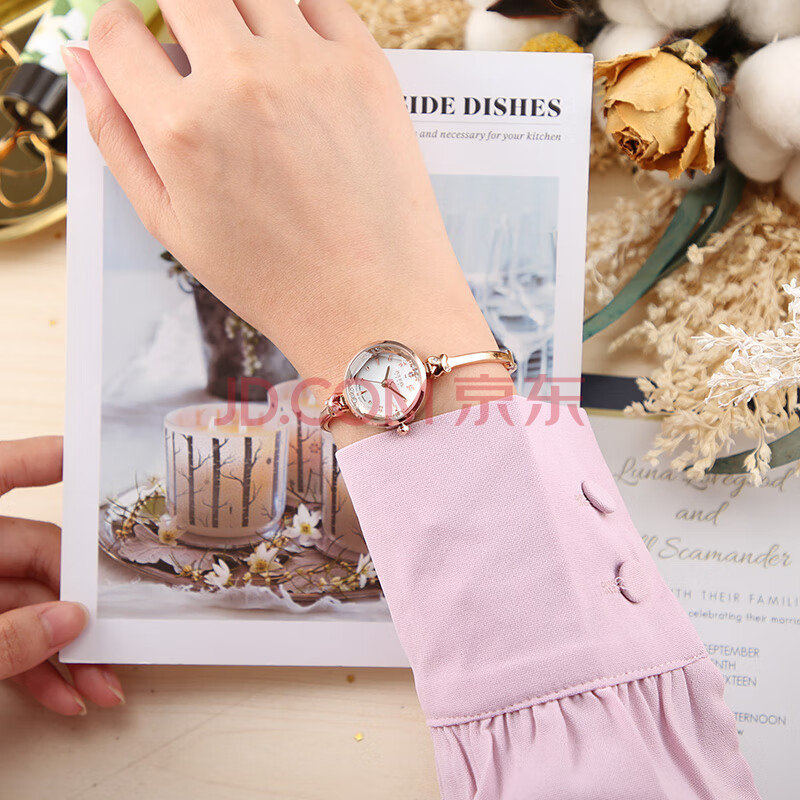 商品相册:聚利时(Julius)手表女水钻时尚百搭纤细手链石英防水学生女士手表玫瑰金JA-878C第
