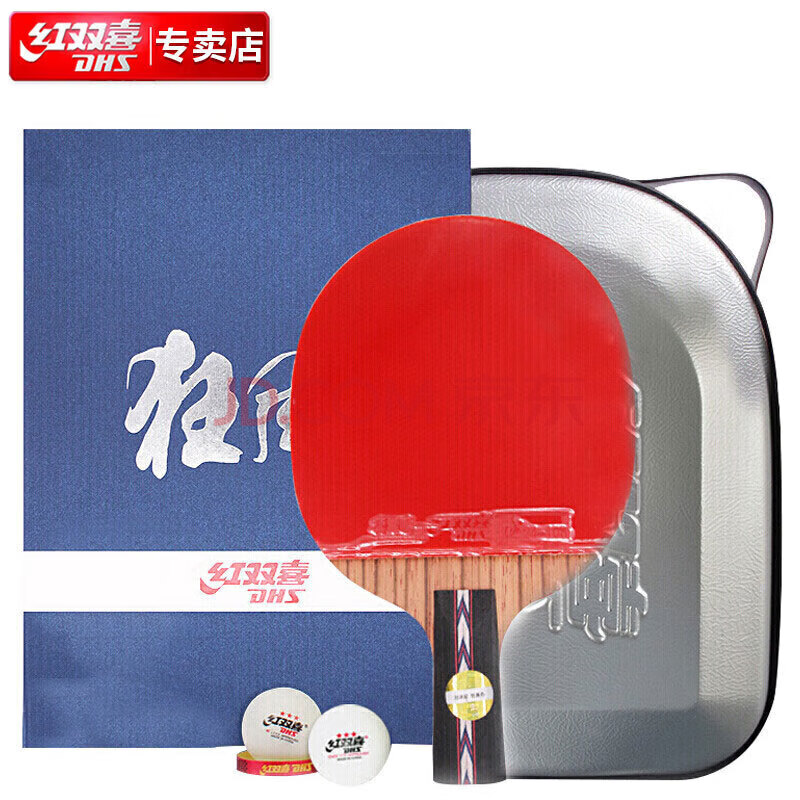 商品相册:红双喜DHS狂飚No.5瑰木面材蓝海绵乒乓球拍狂飚直拍双面反胶乒乓拍第