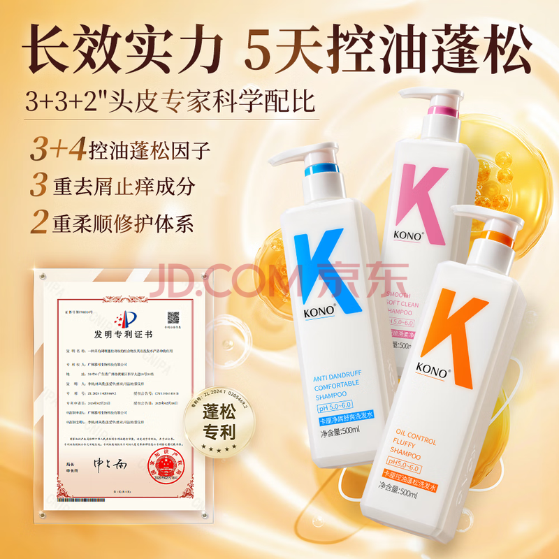 商品相册:KONO卡厘经典洋甘菊控油顺滑洗发水500ml*2 去油柔顺秀发洗发露膏男女第