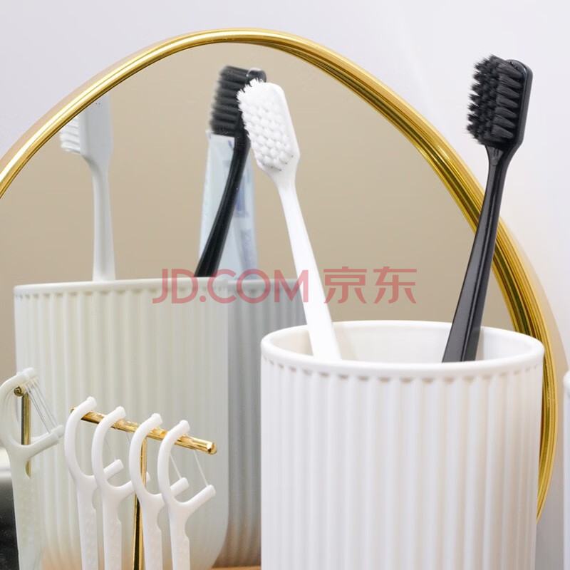商品相册:朗利洁纤巧深洁成人软毛牙刷细密软毛黑白配色清洁简约情侣款2支装第