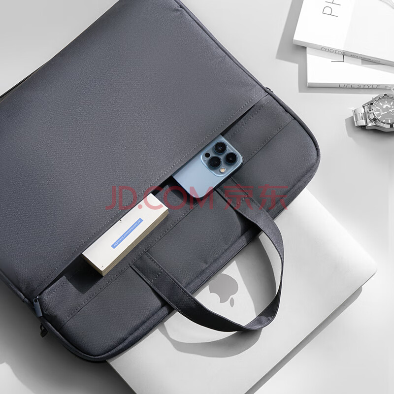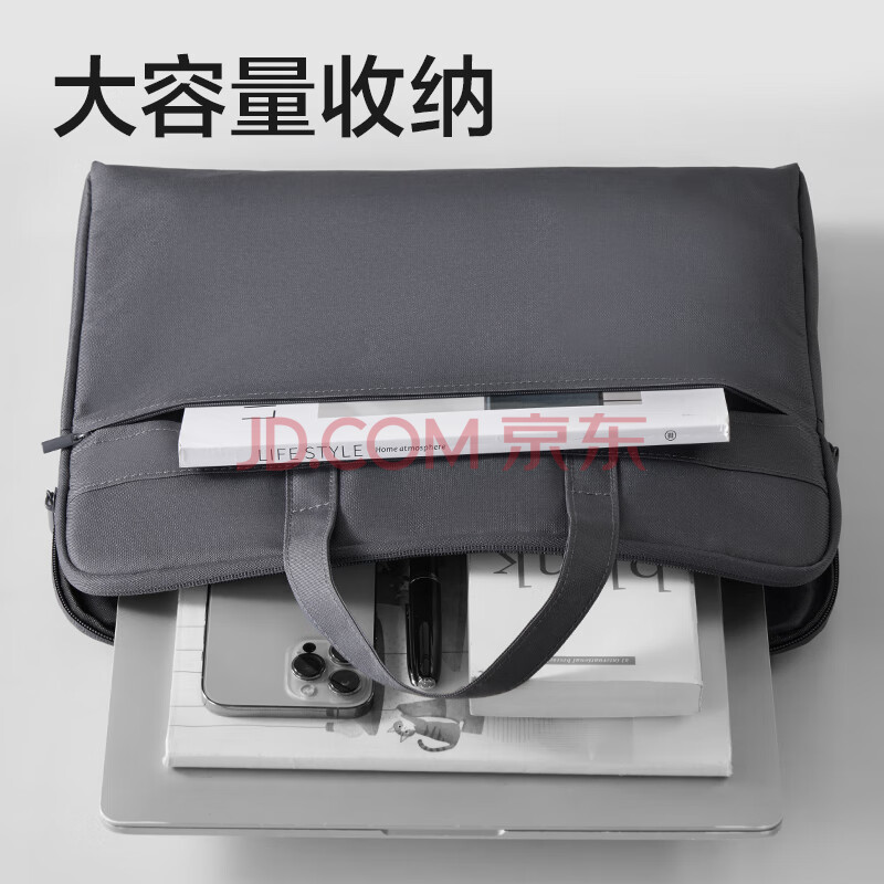 商品相册:得力(deli)公文包加厚立体办公手提袋会议包事务包商务拉链袋电脑包公文包便携手提袋生日礼物 灰色新老随机第