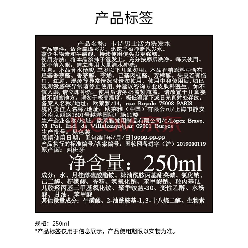 商品相册:卡诗男士活力氨基酸洗发水250ml蓬松强韧滋润修护细软发第