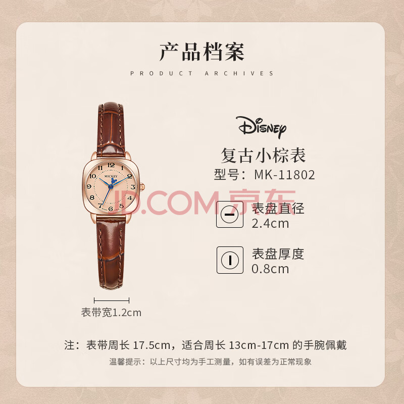 商品相册:迪士尼(Disney)手表女学生简约气质ins风高中生方形女士手表复古小棕表生日礼物第