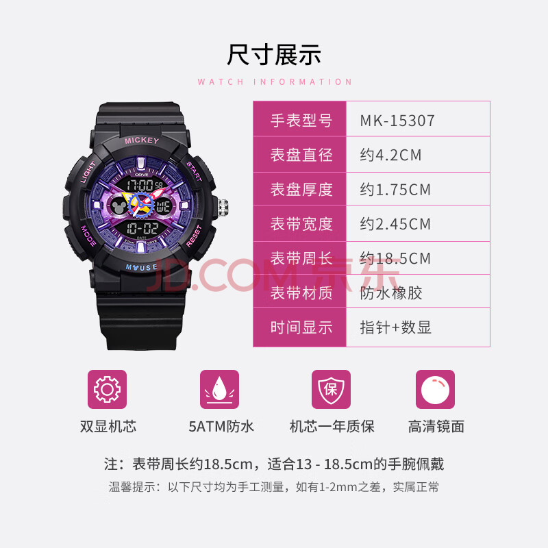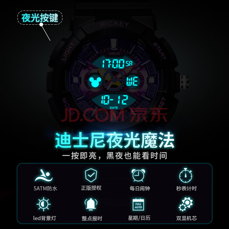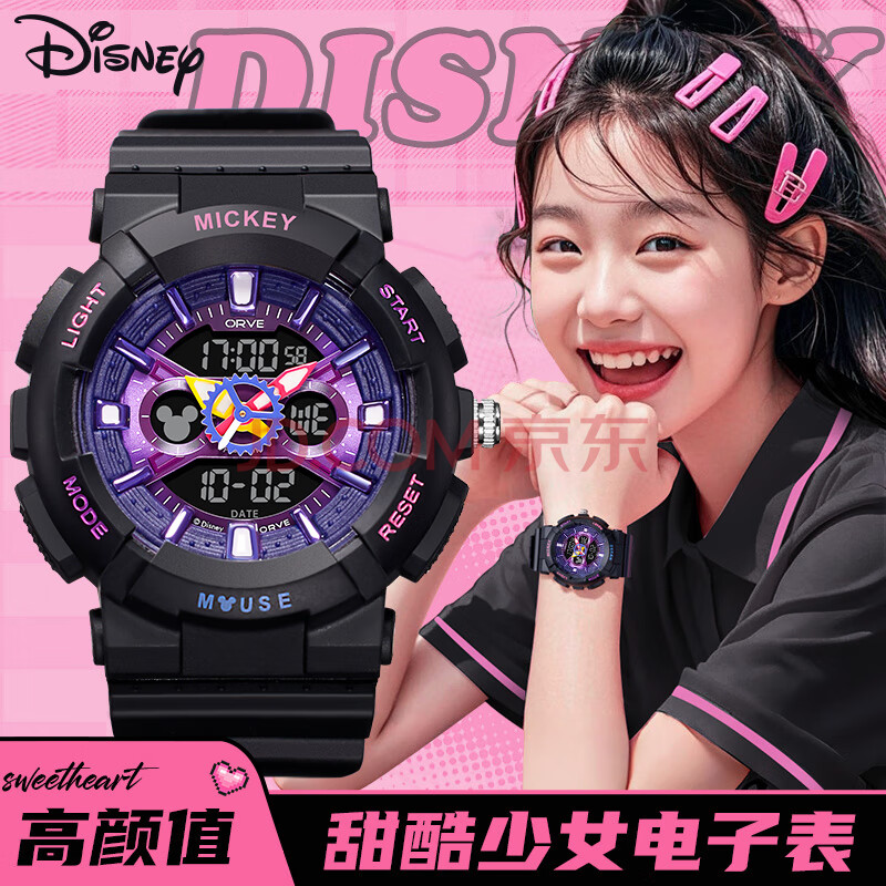 商品相册:迪士尼(Disney)运动手表女孩多功能电子表小学初中生儿童潮流防水手表开学礼物第