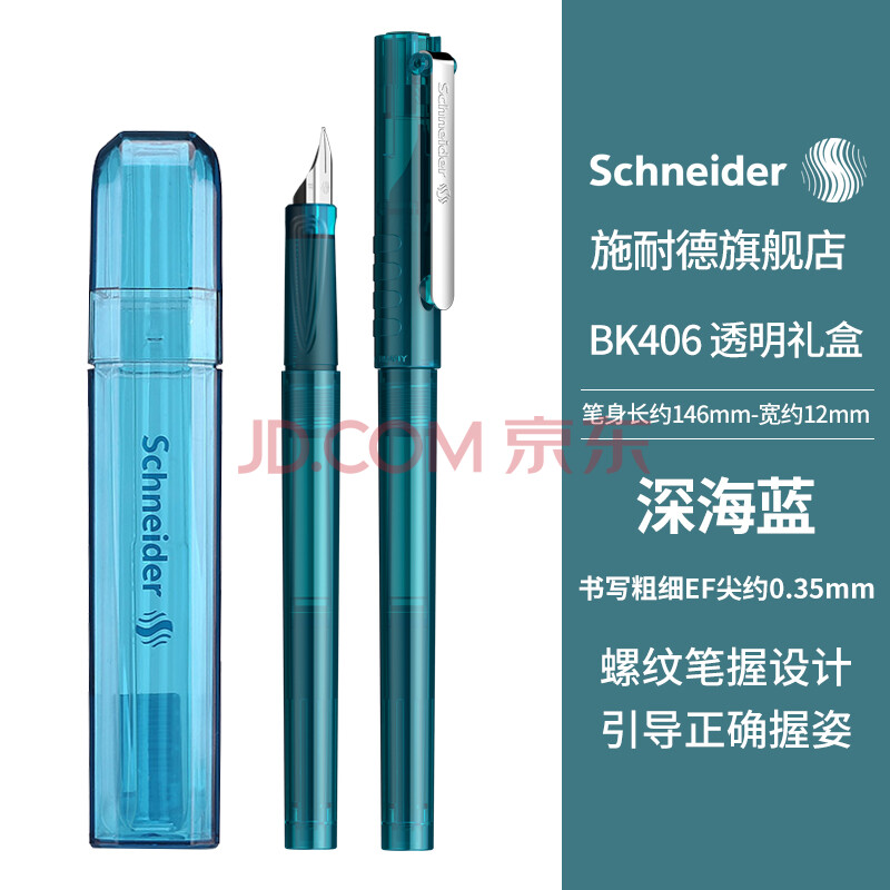 商品相册:施耐德(Schneider)钢笔学生成人直液式练字笔男女三四年级签字墨水笔EF尖 开学必备用品-深海蓝161834H第