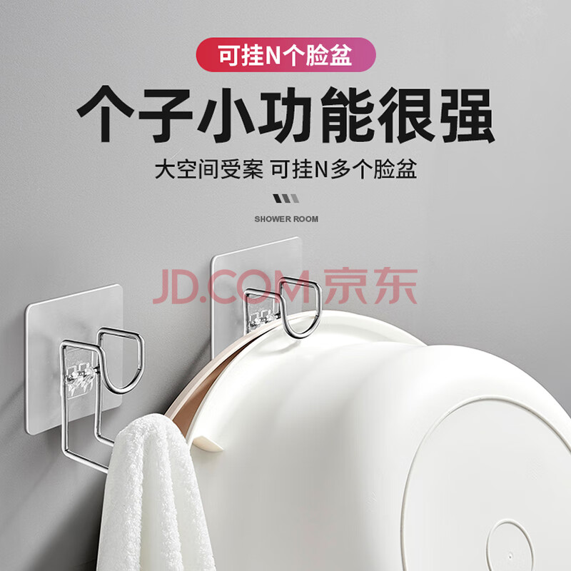 商品相册:茨格曼 脸盆挂钩 不锈钢脸盆架强力粘钩挂钩浴室卫生间无痕免打孔3个装第