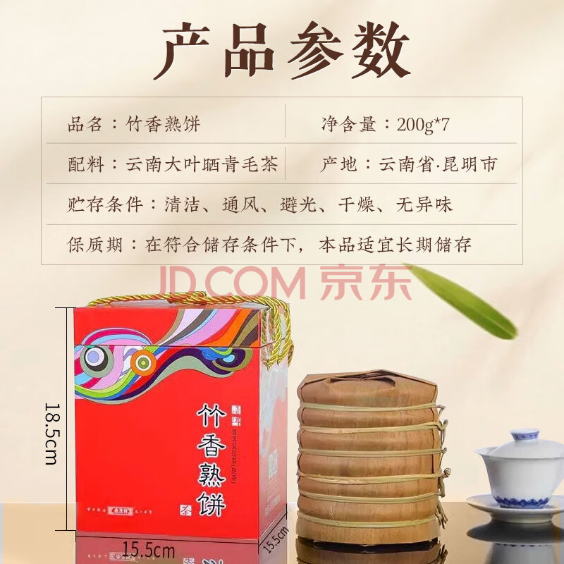 商品相册:七彩雲南普洱茶 2017年布朗山特级普洱茶熟茶饼 竹香熟饼200g*7饼第