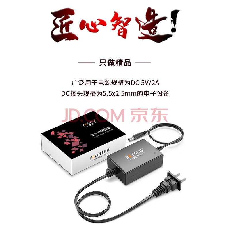 商品相册:博扬(BOYANG) 光纤收发器专用电源 室内电源适配器 DC5V2A 稳压足流 3C认证5.5*2.5mm BY-Z12A-050200C第