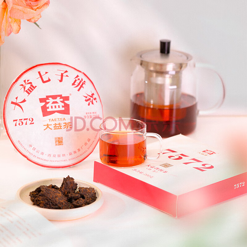 商品相册:大益TAETEA茶叶普洱茶熟茶5年陈化7572饼茶盒装200g经典标杆口粮茶第