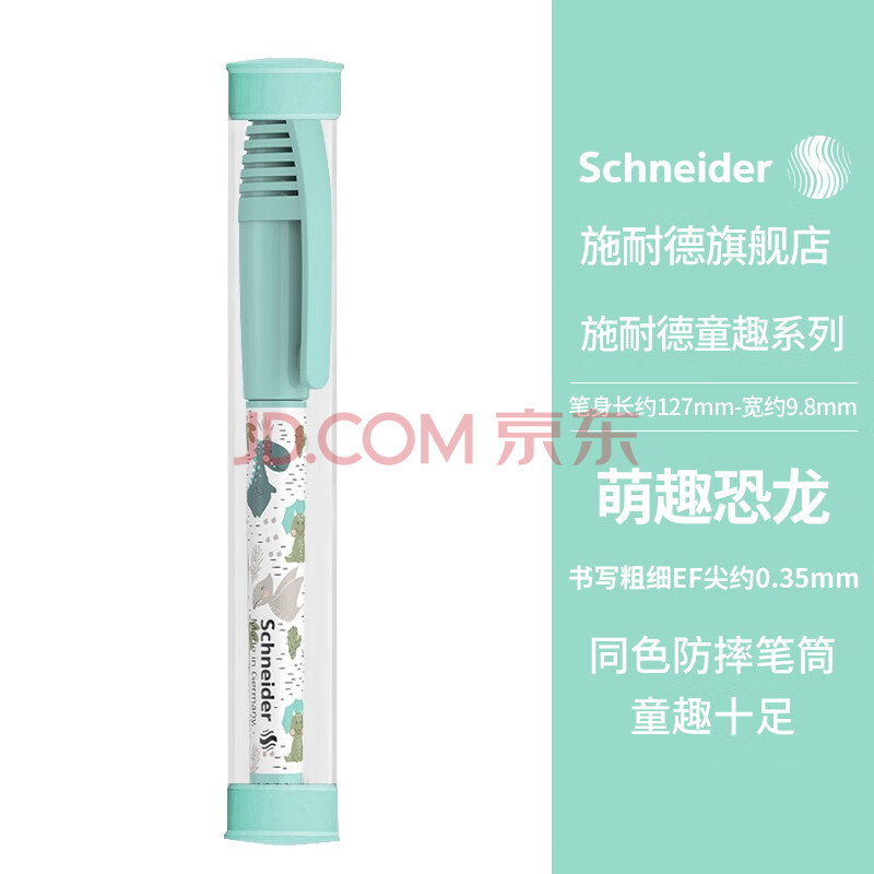 商品相册:施耐德小学生钢笔初学者儿童正姿直液式练字笔三四年级墨囊钢笔开学必备EF尖童趣-绿色恐龙第