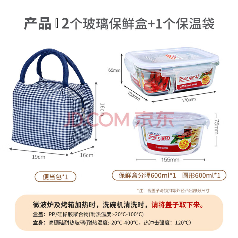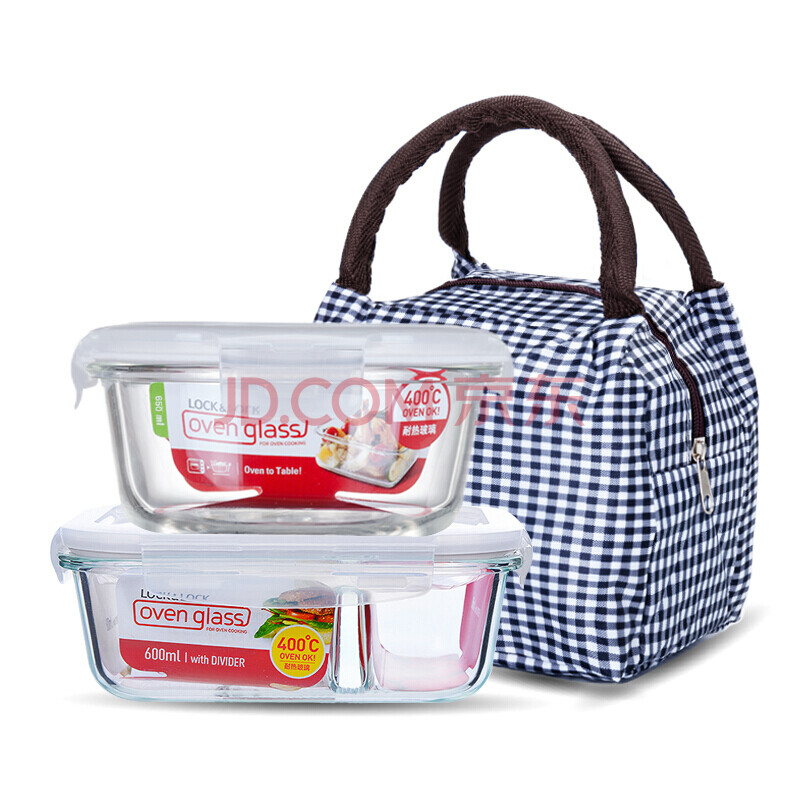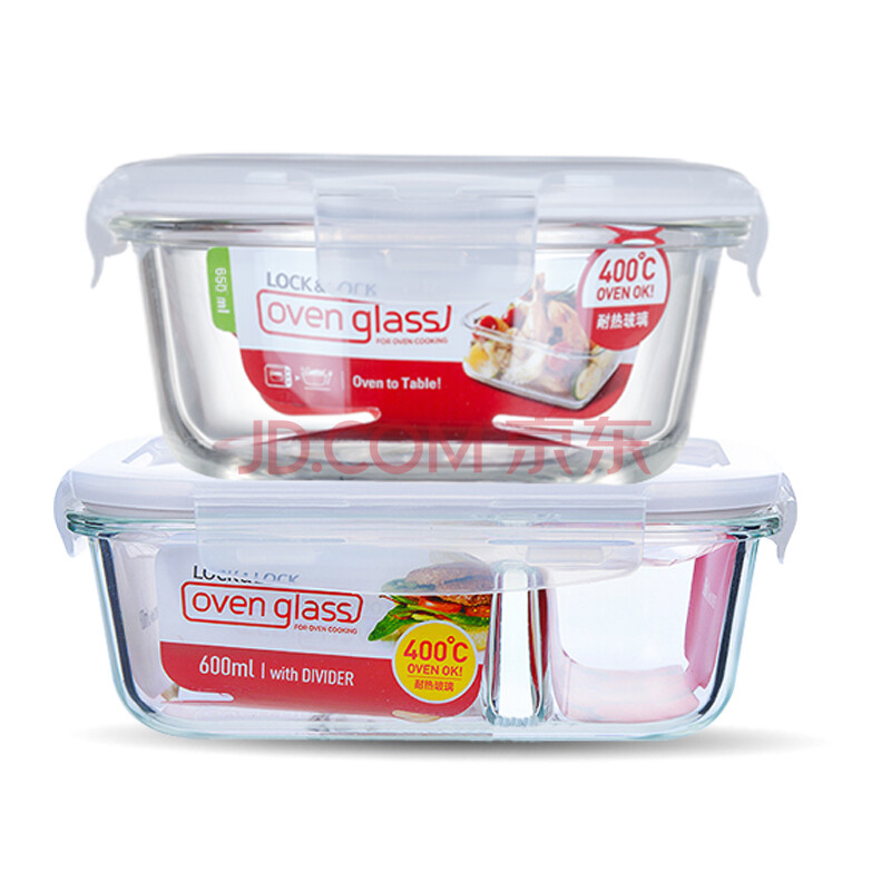 商品相册:乐扣乐扣 分隔耐热玻璃密封保鲜盒套装 600(分格)+650(圆形)ML 带饭包第
