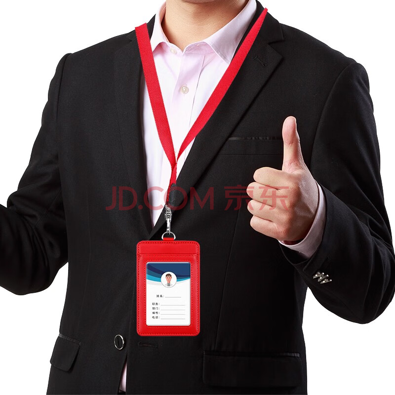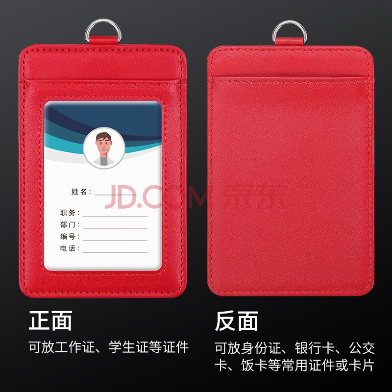 商品相册:嘉然恒 真皮工作牌企业员工胸牌证件卡套带收纳卡位挂脖牌会议出入证工作证套牛皮材质可定制 红色竖款第