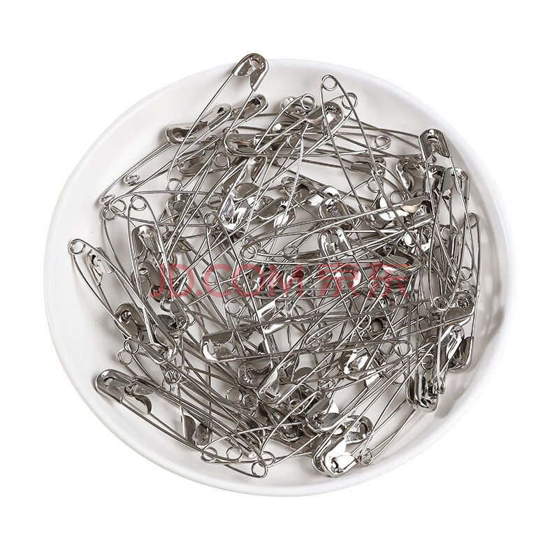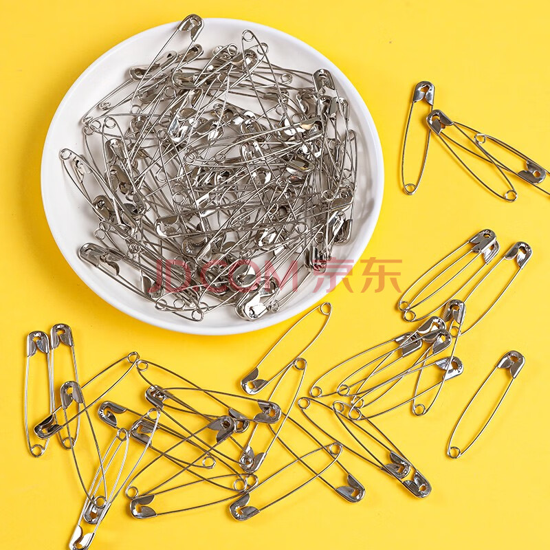 商品相册:递乐 55mm银色大号别针80枚/筒儿童安全床单被套简易别针扣针固定衣服保险小曲别针回形针 2235第