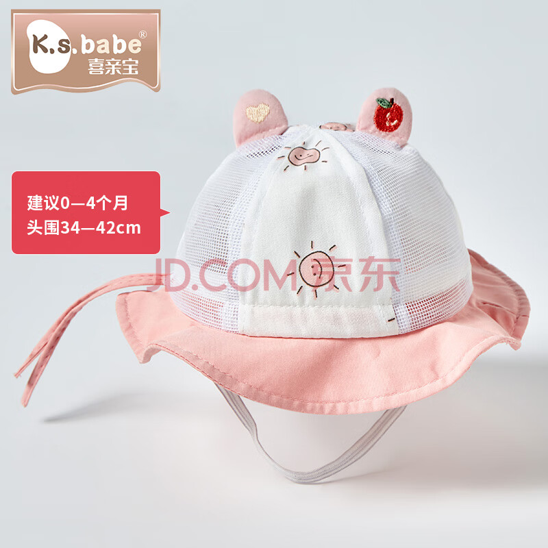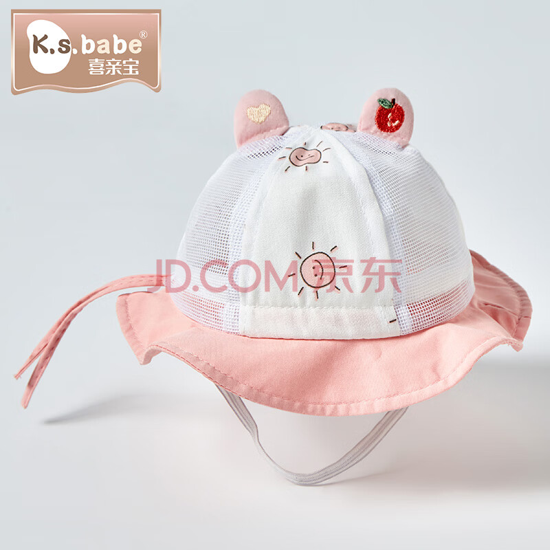 商品相册:喜亲宝新生儿帽子宝宝太阳帽遮阳帽婴儿渔夫帽小码(粉色)双耳款第
