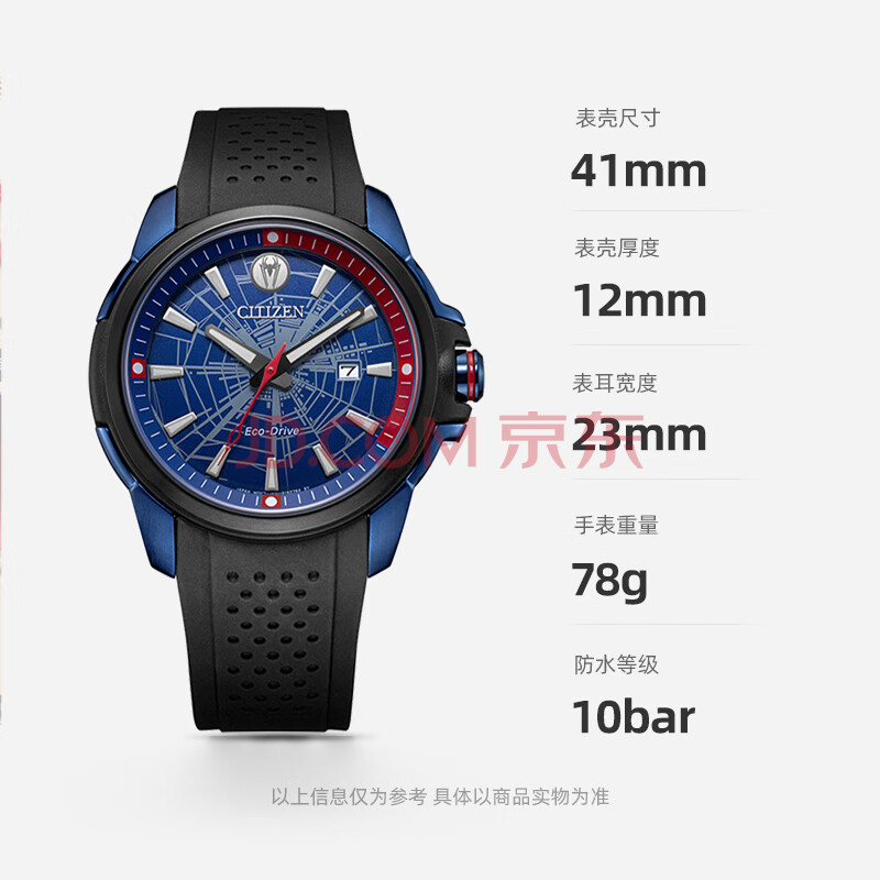 商品相册:西铁城(CITIZEN)手表男日韩表漫威蜘蛛侠款光动能PU带学生送男友礼物AW1156-01W第