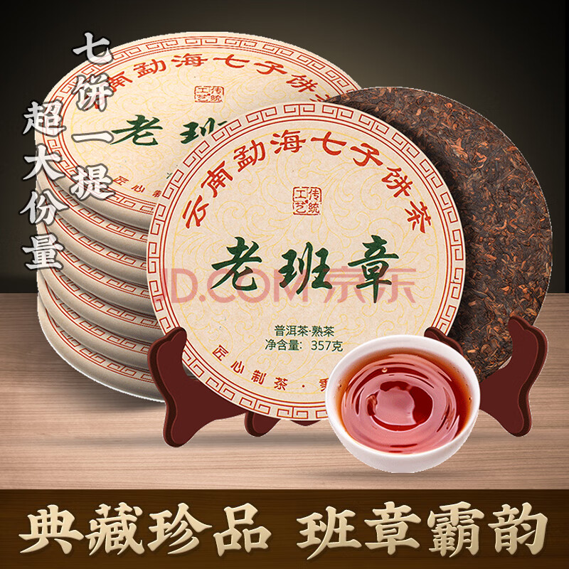 商品相册:福东顺 茶叶 2013年勐海古树普洱熟茶十一年老班章普洱茶7饼整提2499g第