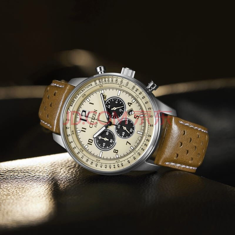 商品相册:西铁城(CITIZEN)手表男日韩表FF系列光动能三眼盘皮带商务礼物CA4500-16X第