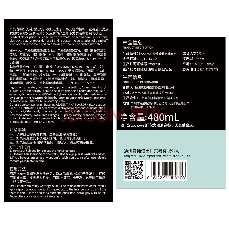 商品相册:Stockwell去屑洗发水男士洗头膏 控油蓬松洗发露男女通用 礼盒装480ml*2第