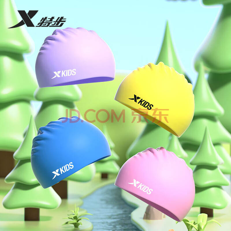 商品相册:特步(XTEP)儿童泳帽青少年男女童舒适防水游泳帽专业游泳硅胶泳帽 粉色第