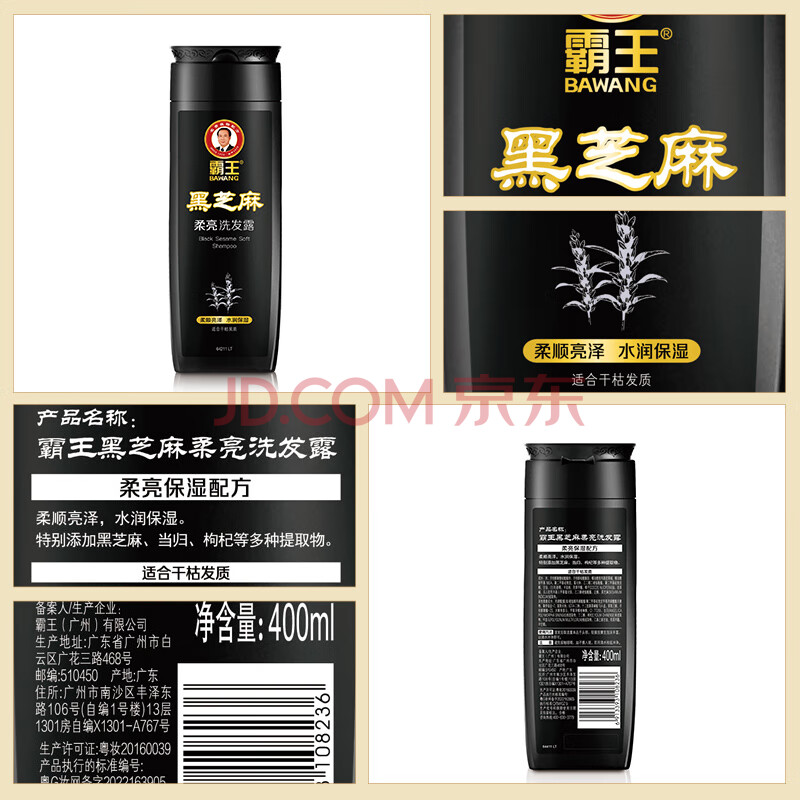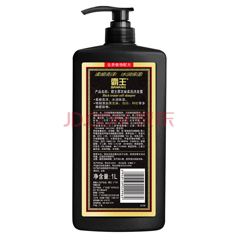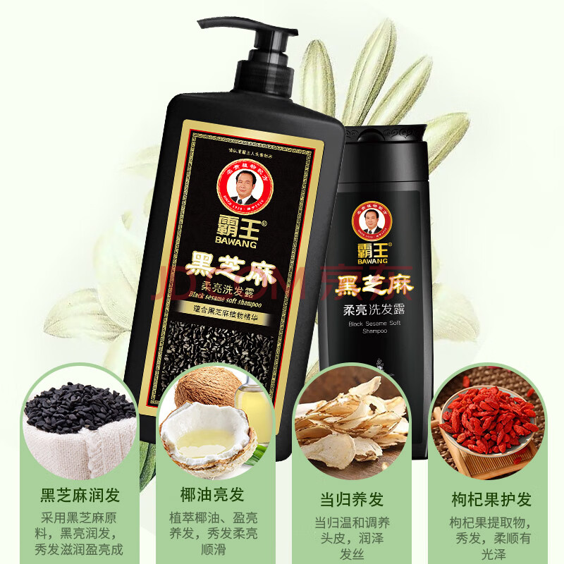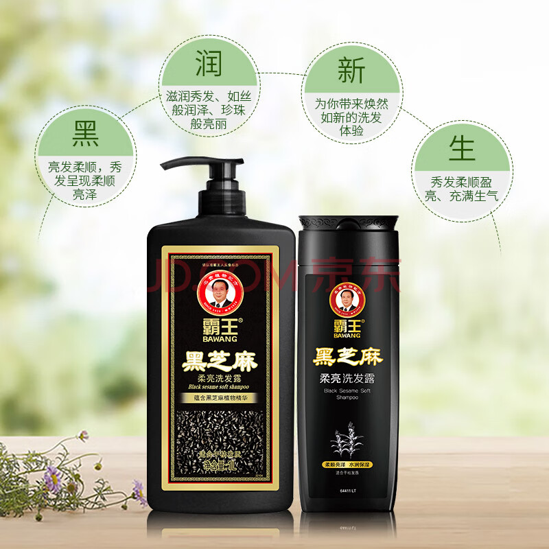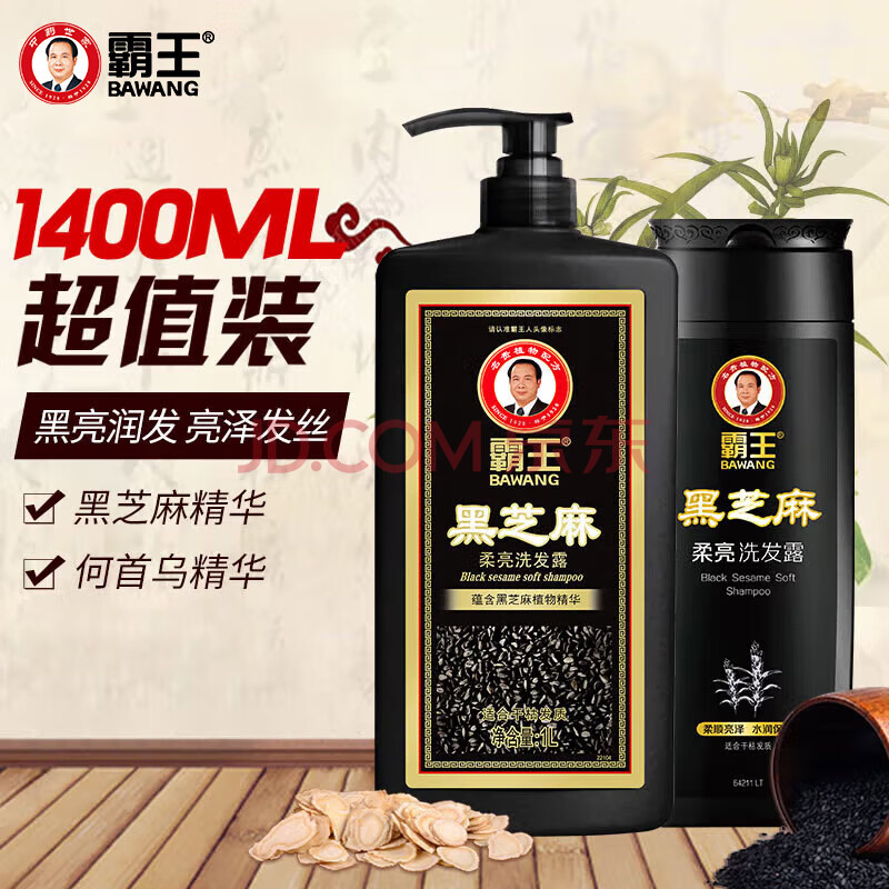 商品相册:霸王洗发水套装黑芝麻柔亮洗发露1L+400ml(柔顺亮泽 水润保湿)第
