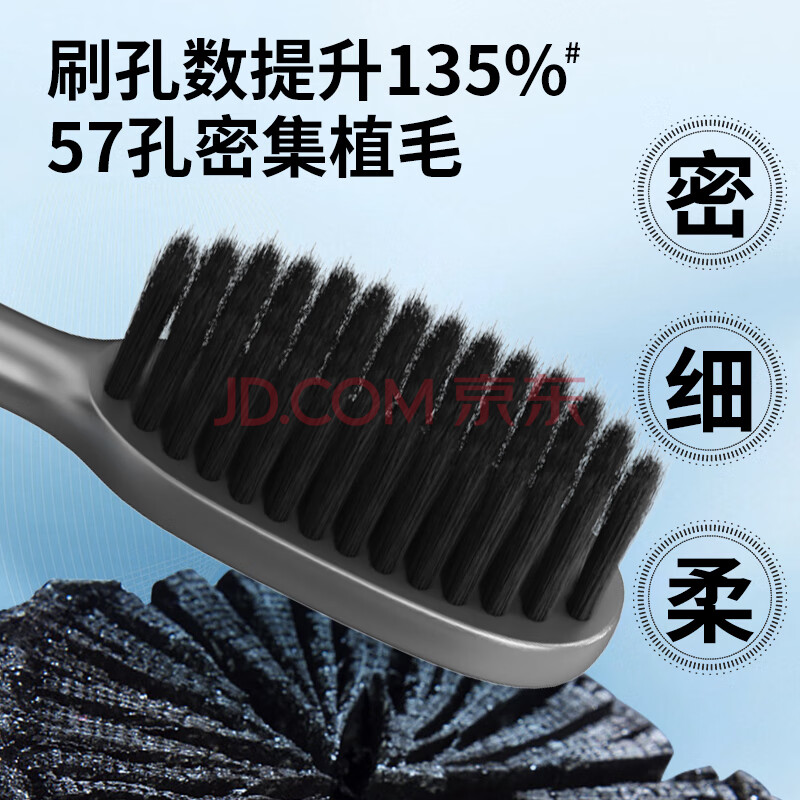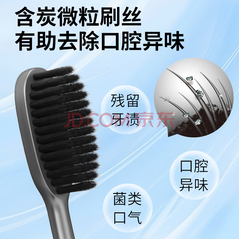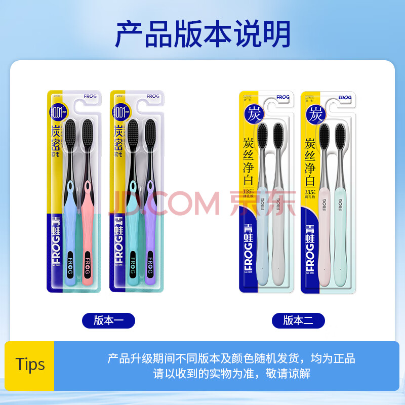 商品相册:青蛙柔护炭丝成人牙刷8支59孔软毛护龈家庭装(新旧包装随机发)第