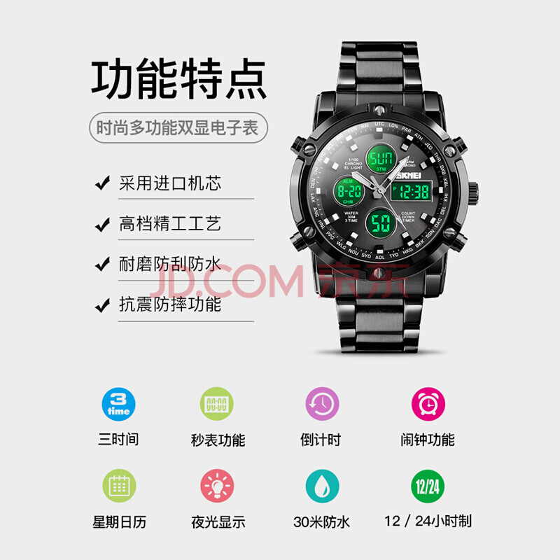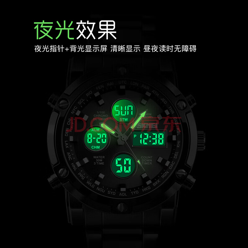 商品相册:时刻美(skmei)青少年初高中生学生运动多功能夜光防水电子手表男生日礼物1389第