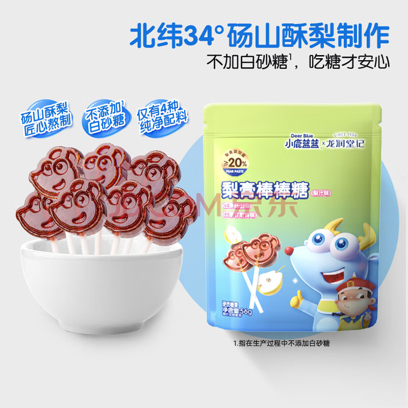 商品相册:小鹿蓝蓝 梨膏棒棒糖儿童宝宝零食0白砂糖砀山酥梨独立包装56g第