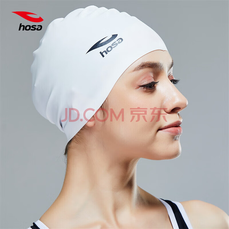 商品相册:浩沙(hosa)泳帽男女通用成人防水长发护耳硅胶游泳帽 高弹舒适不勒头 白色第