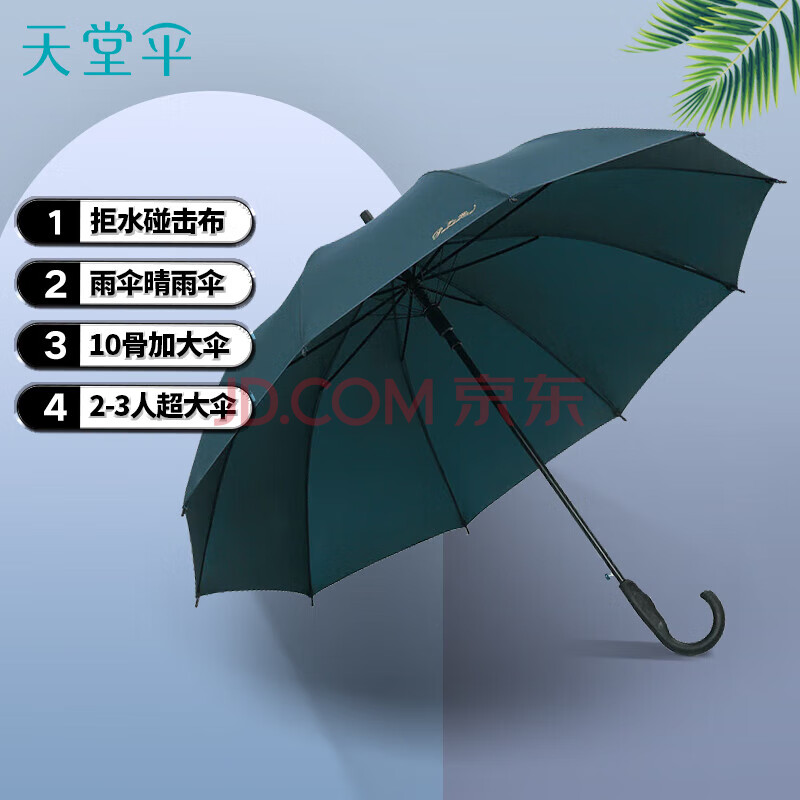 商品相册:天堂 长柄加大雨伞半自动超大号商务直杆伞晴雨伞70*10骨 冷山绿第