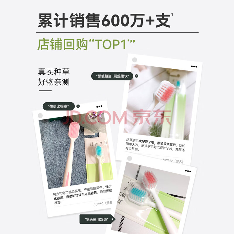 商品相册:极简生活【采销主推】经典48孔宽头男女士牙刷软毛防敏感呵护牙龈 成人4支第