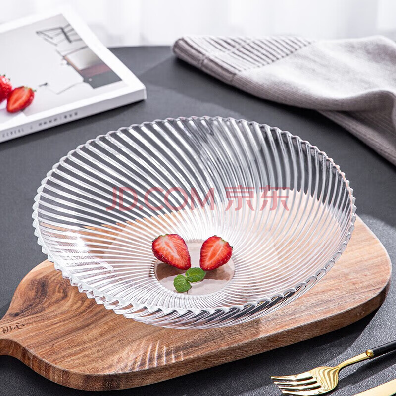 商品相册:青苹果玻璃果盘果斗轻奢客厅装饰婚庆沙拉碗彩盒装11英寸第