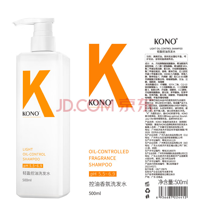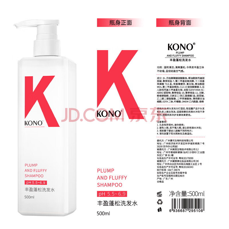 商品相册:KONO卡厘经典烟酰胺控油丰盈洗发水500ml*2 蓬松发根去油洗发露膏男女第
