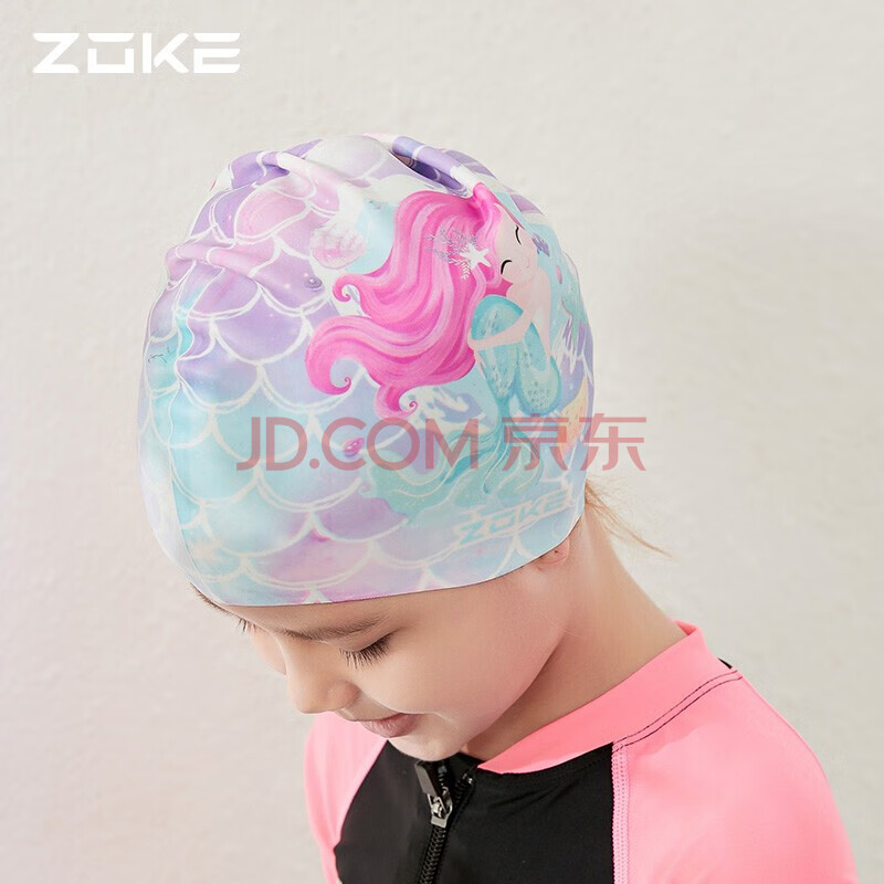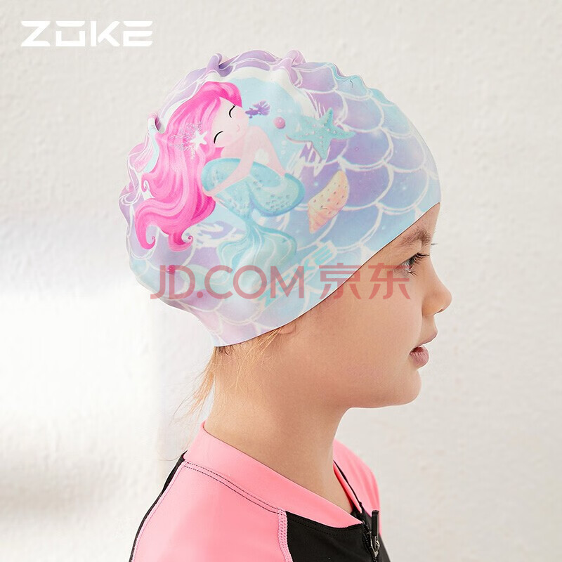 商品相册:洲克(ZOKE)ZOKE儿童泳帽女童硅胶防水护耳卡通动漫舒适不勒头粉红621503238第