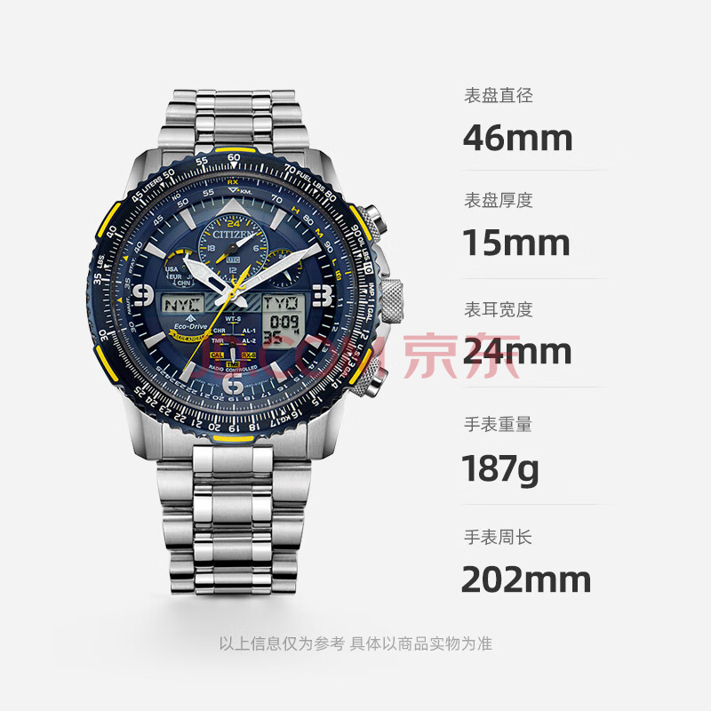 商品相册:西铁城(CITIZEN)手表男日韩表蓝天使光动能电波钢带运动送男友礼物JY8078-52L第1张/共5