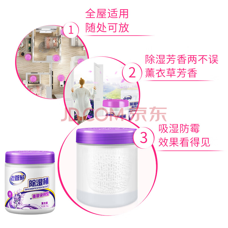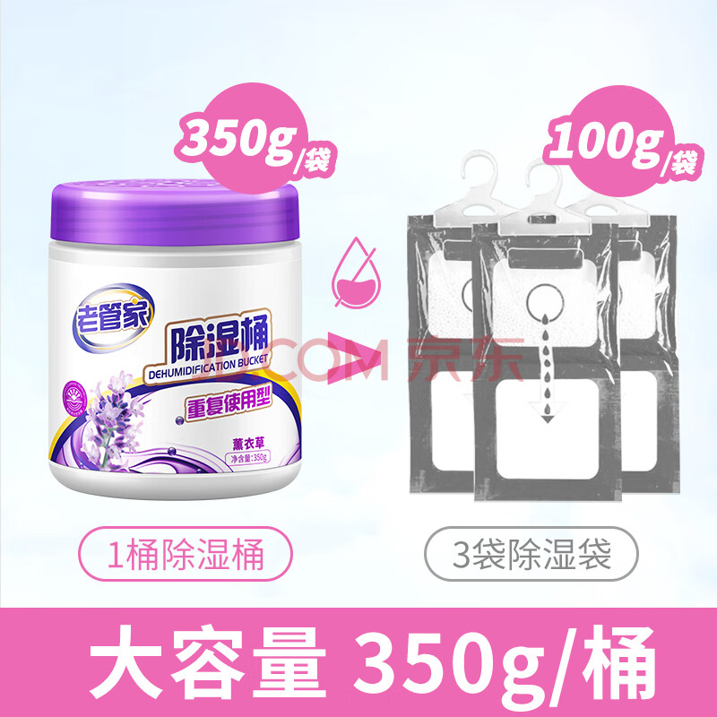 商品相册:老管家 可重复使用除湿桶防潮袋除湿盒防霉350g*2+补充包350g*4第1张/共6