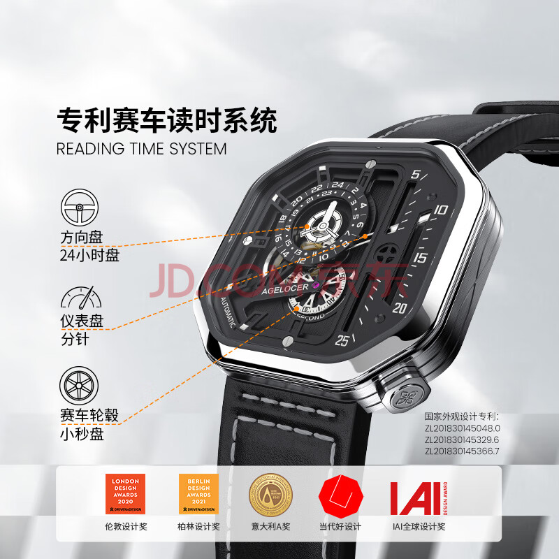 商品相册:爱勒 AGELOCER原创赛车表时尚男士镂空机械手表夜光腕表大表盘送男友生日礼物第
