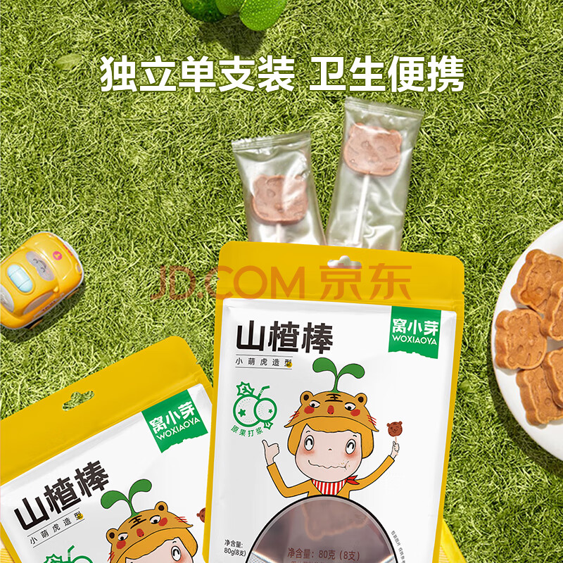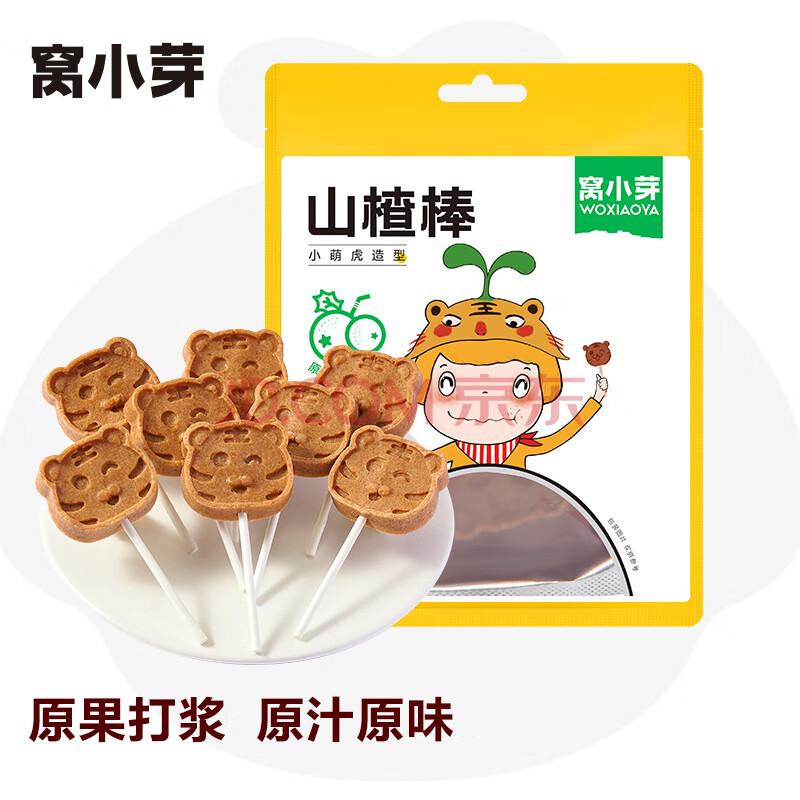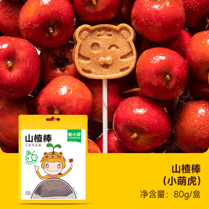 商品相册:窝小芽儿童零食山楂棒棒糖(小萌虎) 原果打浆酸甜山楂片棒棒糖果80g第