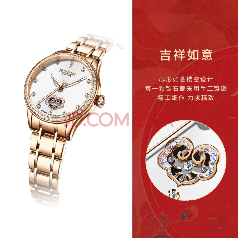 商品相册:劳士顿(ROSDN)如意国风手表女防水全自动机械女士手表十大品牌生日礼物送老婆第1张/共9