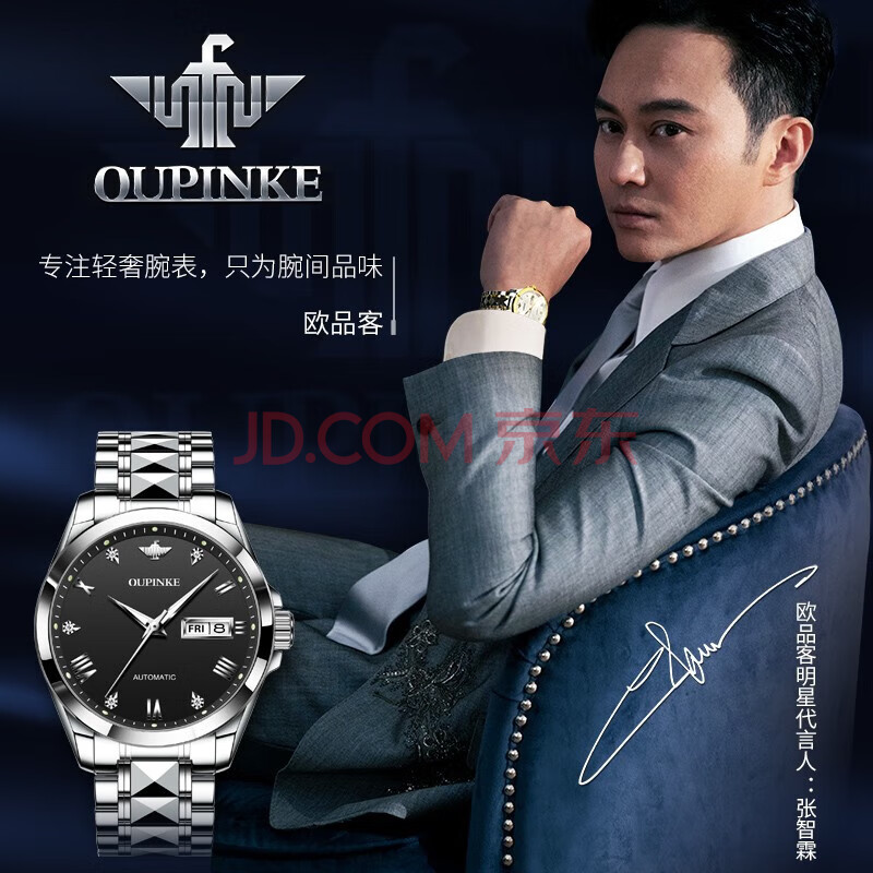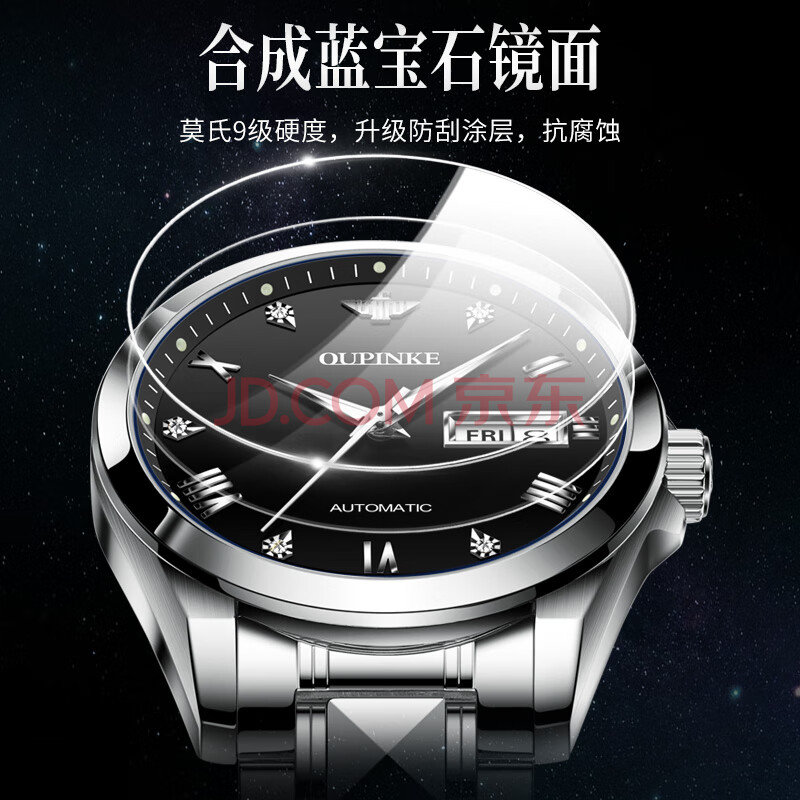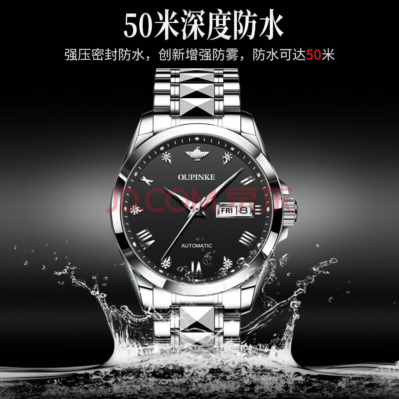 商品相册:欧品客手表男士全自动机械表夜光防水瑞士认证品牌国表情人节礼物送男友第