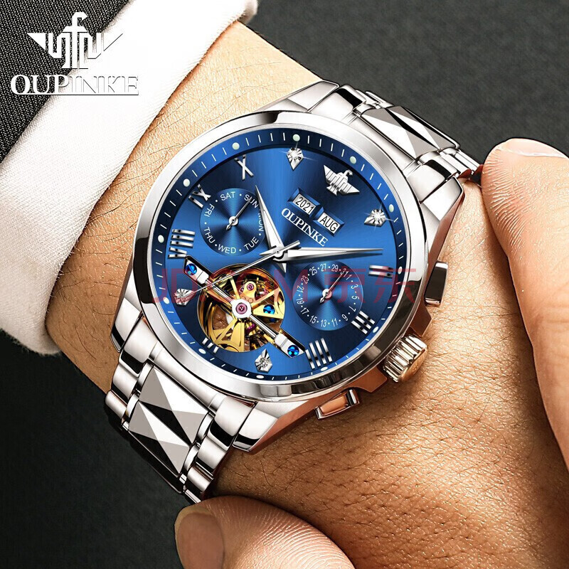 商品相册:欧品客情侣对表全自动机械表女日历夜光防水情侣款手表男士一对生日礼物第