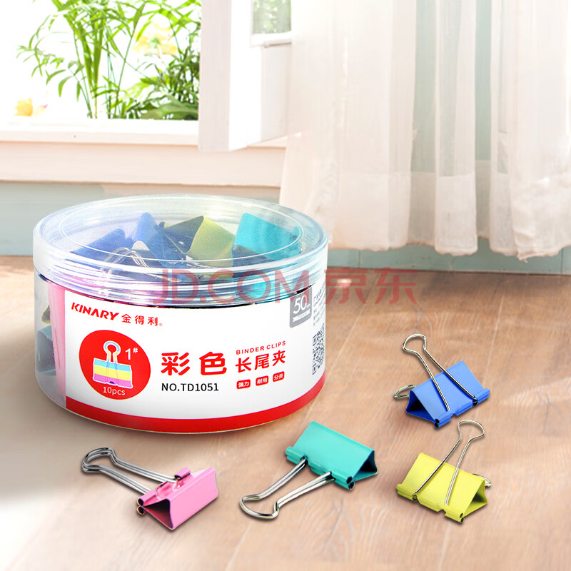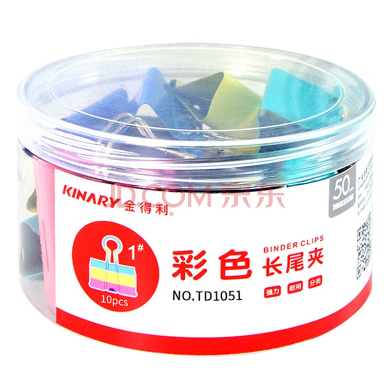 商品相册:金得利(KINARY)10只 50mm 彩色长尾夹 耐用长尾票夹 1#金属燕尾夹 票据夹子 办公用品 TD1051第