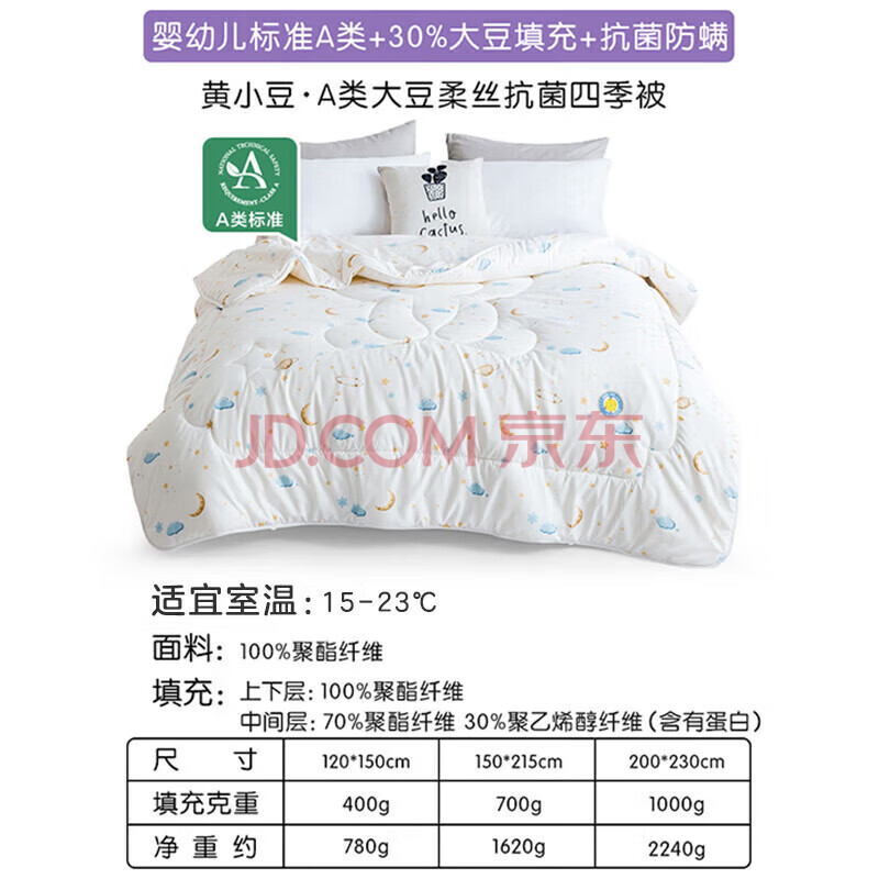 商品相册:罗莱儿童被子 婴幼儿A类抗菌大豆四季被芯 幼儿园被子150*215第